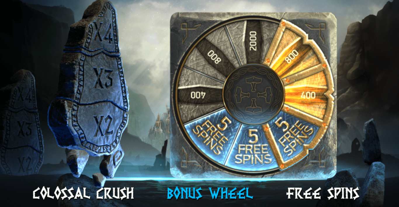 - Bonus Wheel spins and rewards with cash prizes of potentially 5 times your stake and free spins. Five free spins are awarded on 3 fields of the Bonus Wheel. A Bonus Wheel win awards 5, 10 or 15 free spins. During this round, Wild turns into a Colossal Wild symbol and if it is part of a winning combo, it splits into 1x1 Wild symbols.
