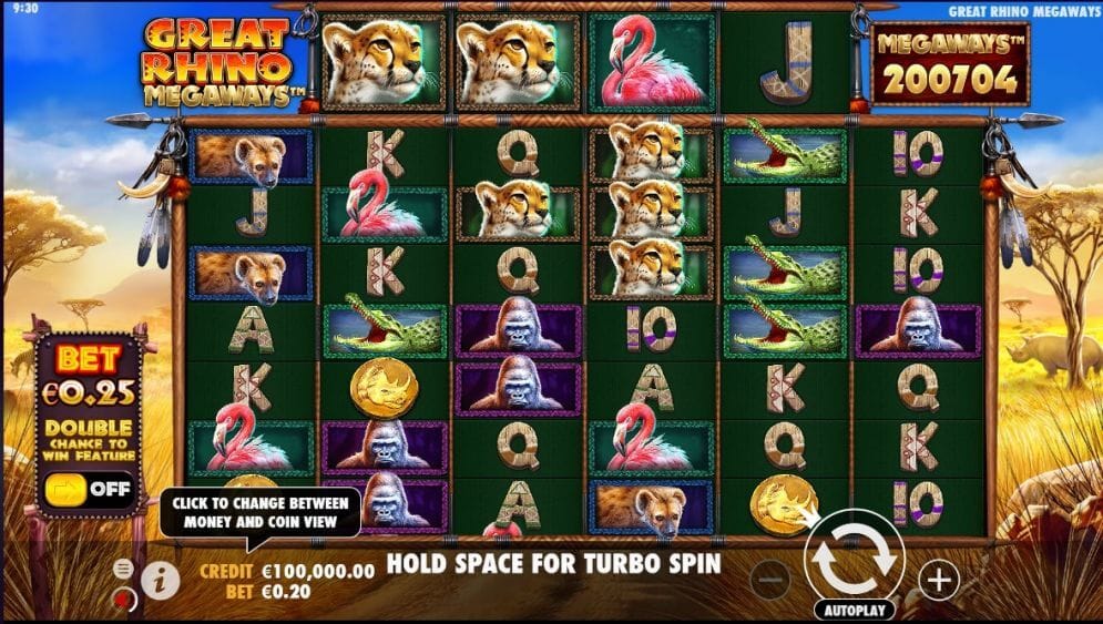 Enjoy the African savannah with this great online slot game from Pragmatic Play. Great Rhino Megaways is a slot game that focuses heavily on continuously adding up ways to win, as the games title suggests.